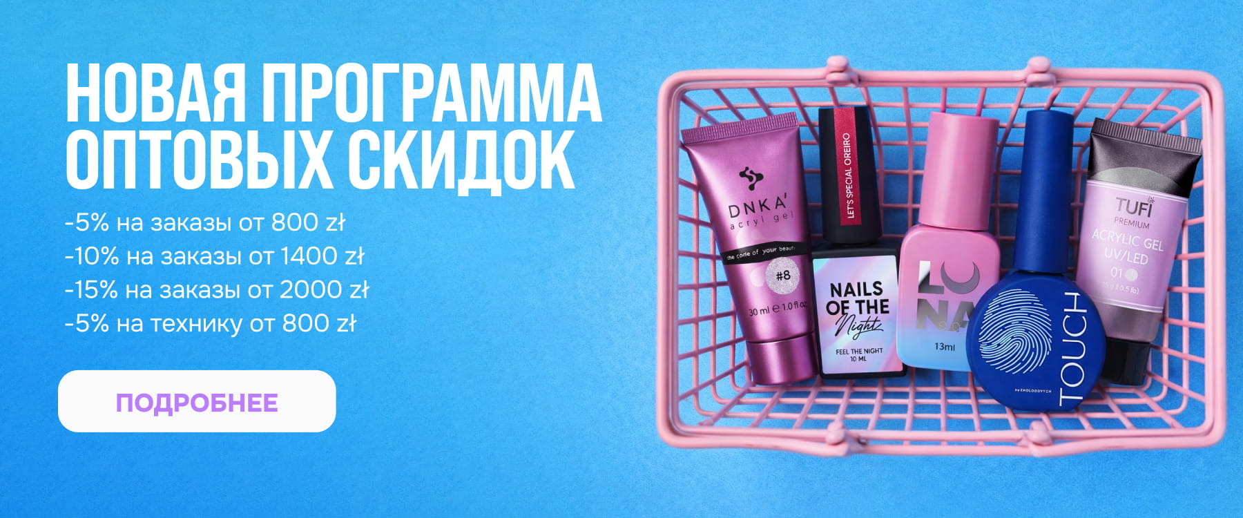 TUFISHOP – это не просто магазин, а настоящий помощник в мире красоты, предлагающий всё необходимое профессионалам в области маникюра, педикюра, визажа, парикмахерского дела и других направлений бьюти-индустрии. Вот лишь небольшая часть того, что вы найдете в нашем ассортименте: